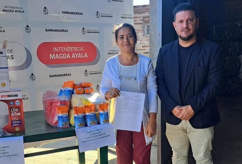 La Municipalidad de Barranqueras, concretó la entrega de premios a instituciones beneficiadas por la recolección de materiales reciclables; que se lleva adelante en el marco del Programa “Barranqueras Sustentable”. Por directivas de la intendente Magda Ayala, el programa es ejecutado por el Área de Desarrollo Local Sustentable, de esta manera, se ha generado un gran trabajo conjunto con diferentes instituciones; escuelas, merenderos, iglesias, entre otras, las cuales funcionan como “puntos limpios”, y contribuyen al cuidado ambiental; promoviendo la separación de residuos en los contenedores. Desde el Área, felicitaron y destacaron la labor de las siguientes instituciones premiadas que recibieron insumos y materiales que les permitirá fortalecer sus labores: – Comedor Los Querubines – Comisión vecinal Barrio El Japonés – Jardín N° 98 «Mirian H. De Andrés» – Iglesia Tierra de Prosperidad – Capilla Jesús de Nazaret
