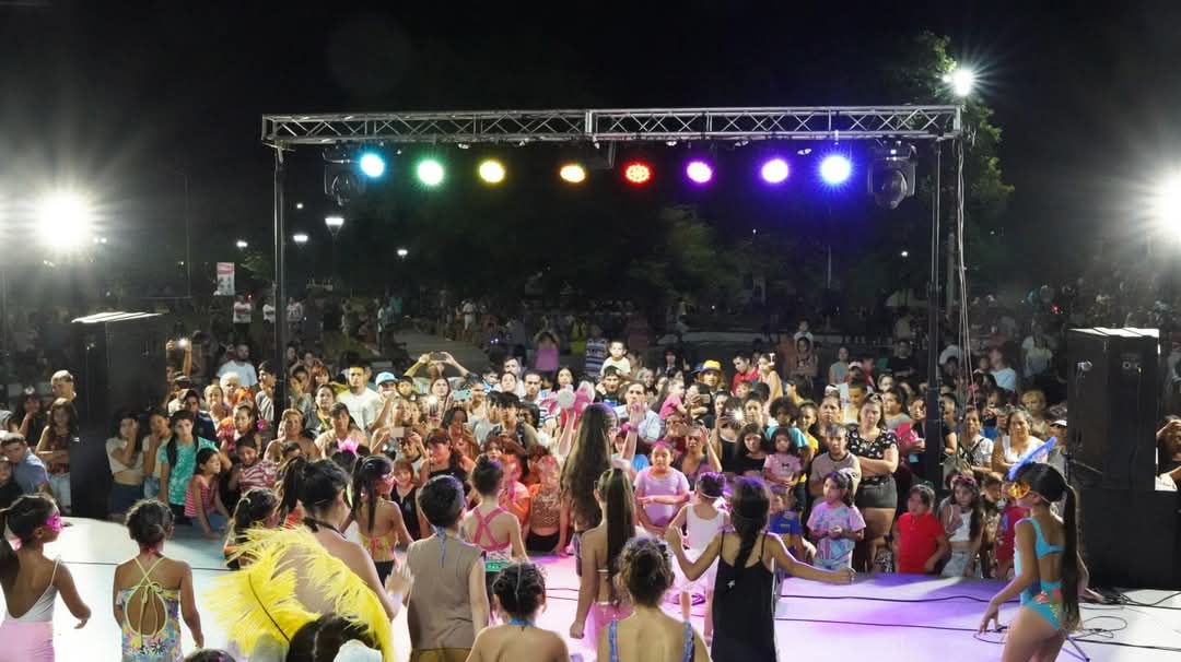 La Plaza Sarmiento fue escenario del gran show de comparsas, anticipando los carnavales en la ciudad