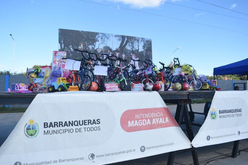 Este sábado, la Municipalidad de Barranqueras, ofreció su tradicional agasajo por el día de la niñez, con una masiva convocatoria de niños junto a sus familias. Las diferentes áreas municipales, instalaron postas de juegos para que los chicos de todas las edades puedan divertirse, hubo pintacaritas, actividades deportivas, castillos inflables, camas elásticas, metegol y shows en vivo. Se regalaron centenares de obsequios; entre juguetes y bicicletas. En este marco, la intendente Magda Ayala declaró: “estamos compartiendo esta fiesta en un marco de tranquilidad, de respeto, que es muy importante, porque la verdad que esto se hace con mucho amor, con mucha responsabilidad y también con mucho sacrificio”.“Tenemos un escenario y un país muy complicado, donde todo está muy difícil y queremos generar estos encuentros para sentir también que ninguno está solo, que está rodeado de amor” agregó.“Es muy importante que el vecino sepa que los costos son genuinos del municipio, todo es pura y exclusivamente del municipio, así como las intervenciones que venimos realizando en todos los barrios de la ciudad; y estos encuentros son muy importantes, que a pesar de que por ahí, quizás, es un gasto para nosotros; es importante, porque muchos de nuestros niños no tienen la oportunidad de ir a otra fiesta del niño, de poder compartir con amigos, de poder compartir con la familia, de poder subir a un inflable, de poder llevarse juguetes para disfrutar con sus vecinitos, la verdad que para nosotros esto es muy importante”. Para finalizar, resaltó: “venimos trabajando y obviamente somos muy ordenados con respecto al financiamiento, con la planificación, para no descuidar ningún sector del municipio”.